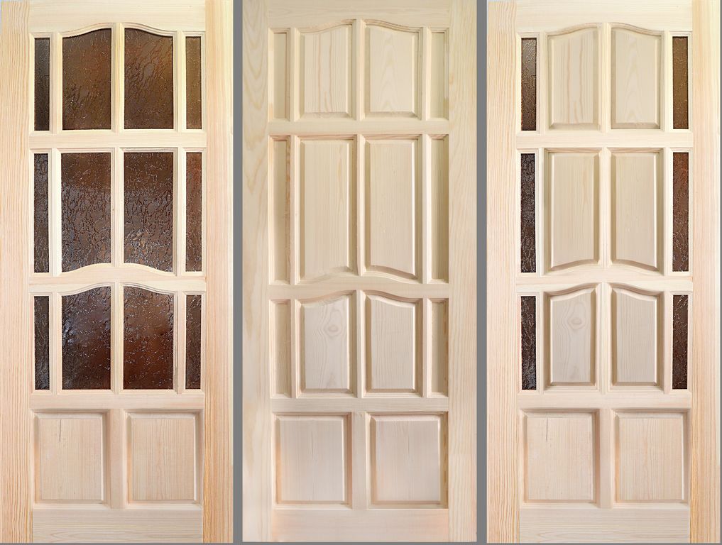 Дверное полотно имеет полностью деревянный каркас, вокруг оно оклеено панелями, чаще сделанными из ДСП. Наружная поверхность выполнена из прочной пленки – она служит некой защитой для будущей двери. Пленка защищает от попадания влаги, что продлевает время эксплуатации.
