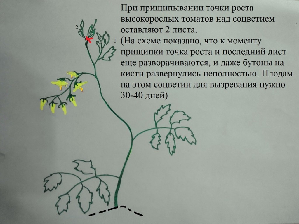 Последнее прищипывание должно быть не позднее, чем за 30–35 дней до съема плодов.