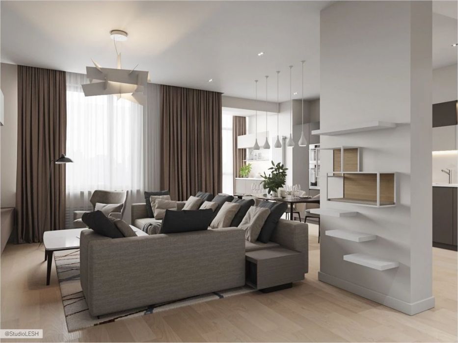 Во многих однокомнатных квартирах можно увидеть две зоны, разделенные спинкой дивана. Подобный вариант часто применяют в студиях. Однако, это не единственное выгодное решение, если речь идет о зонировании пространства мебелью. Можно пойти и более оригинальным путем.