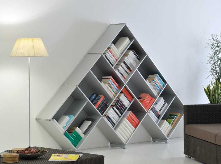 Нестандартное расположение полок пугает новичков, но собрать деревянный стеллаж своими руками в виде ёлочки намного проще, чем кажется.