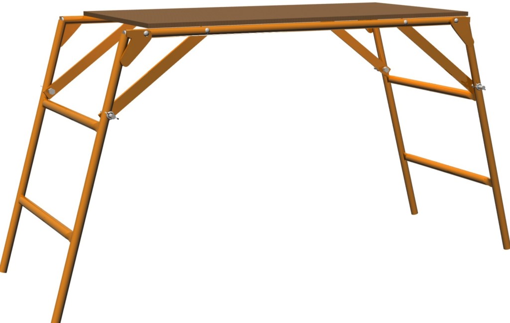 Как правило, такая конструкция похожа на две стремянки, которые соединены между собой. Стоит отметить, что такое приспособление довольно просто превратить в стол. Для этого нужно лишь положить сверху лист фанеры или изготовить специальную столешницу. Именно поэтому строители так полюбили многофункциональные лестницы, используя их вместо “козлов”.