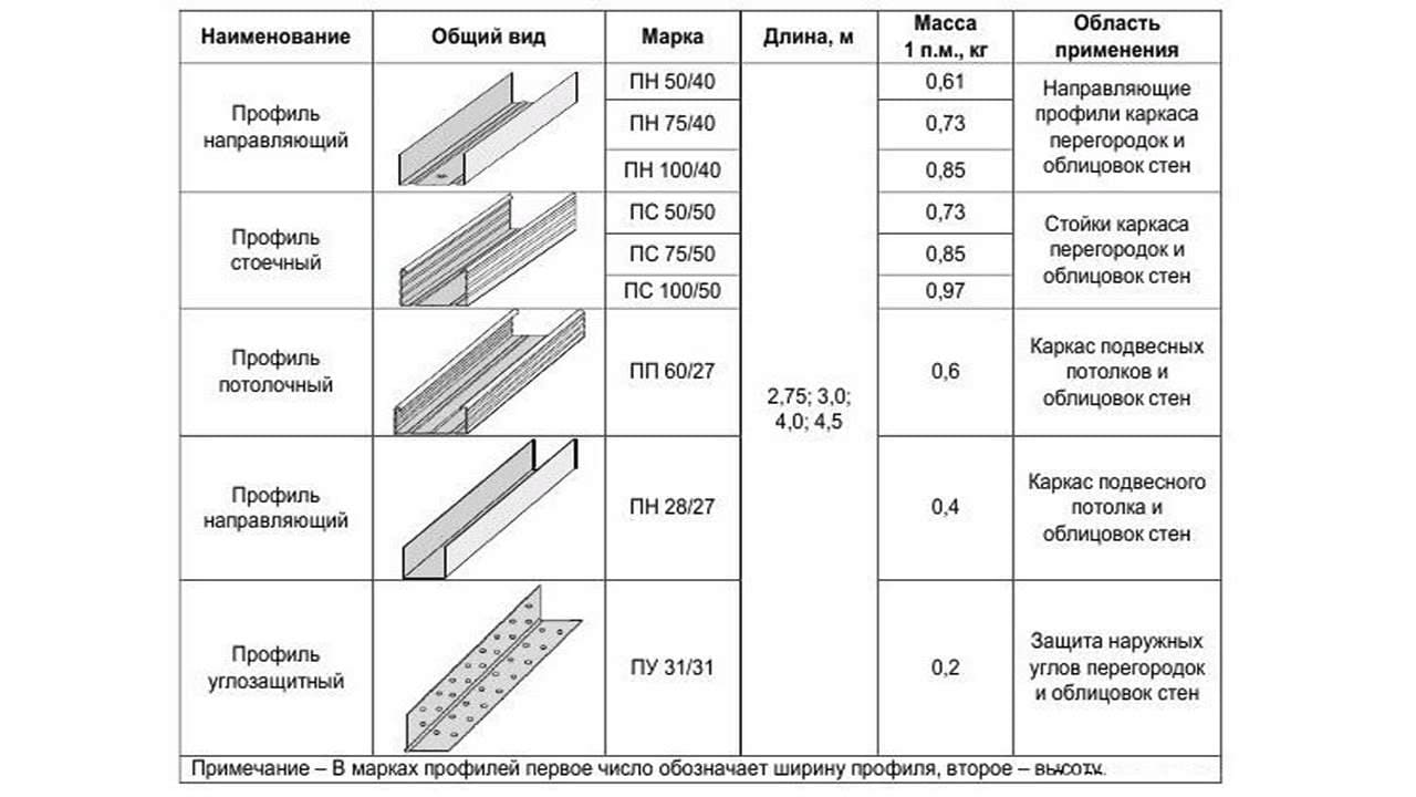 Еще один важный момент: ширина направляющего профиля выбирается с учетом планируемой толщины перегородки. При профиле ПН-2 50Х40 мм толщина составит