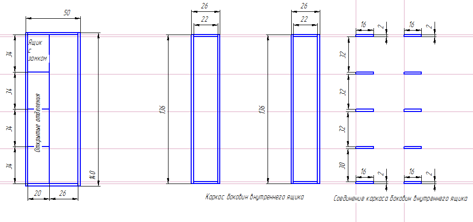 Наиболее распространенная схема охотничьего сейфа показана на чертежах ниже: