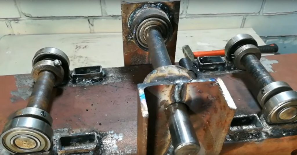 - самая трудная часть сборки – это подбор вальцов необходимого размера, чтобы они плотно прижимались к трубе;