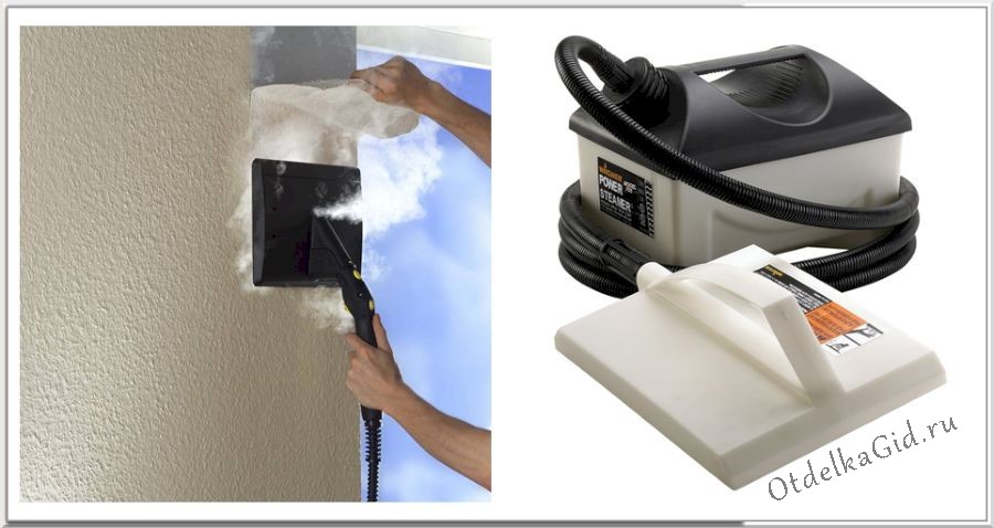 - «NEOM >Профессиональный отпариватель для отделения покрытия от основы своей конструкцией напоминает пылесос. Под воздействием горячего пара засохший клей растворится, и оторвать обои от гипсокартона будет очень просто.