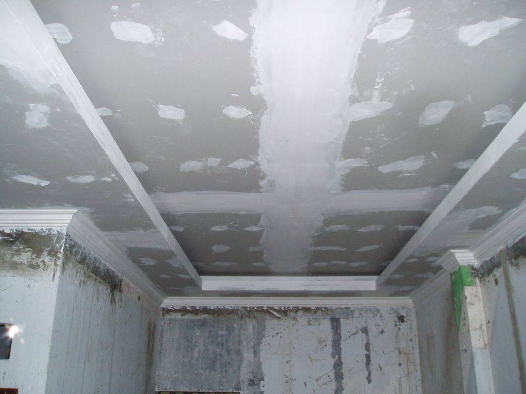 Всю плоскость потолка, потребуется пройти шпаклевкой не один раз. Если слои будут достаточно тонкими, то к моменту окончания работ на одном конце поверхности, тот, с которого работа начиналась, уже полностью высохнет. Если смесь еще не успела просохнуть, лучше сделать небольшой перерыв.