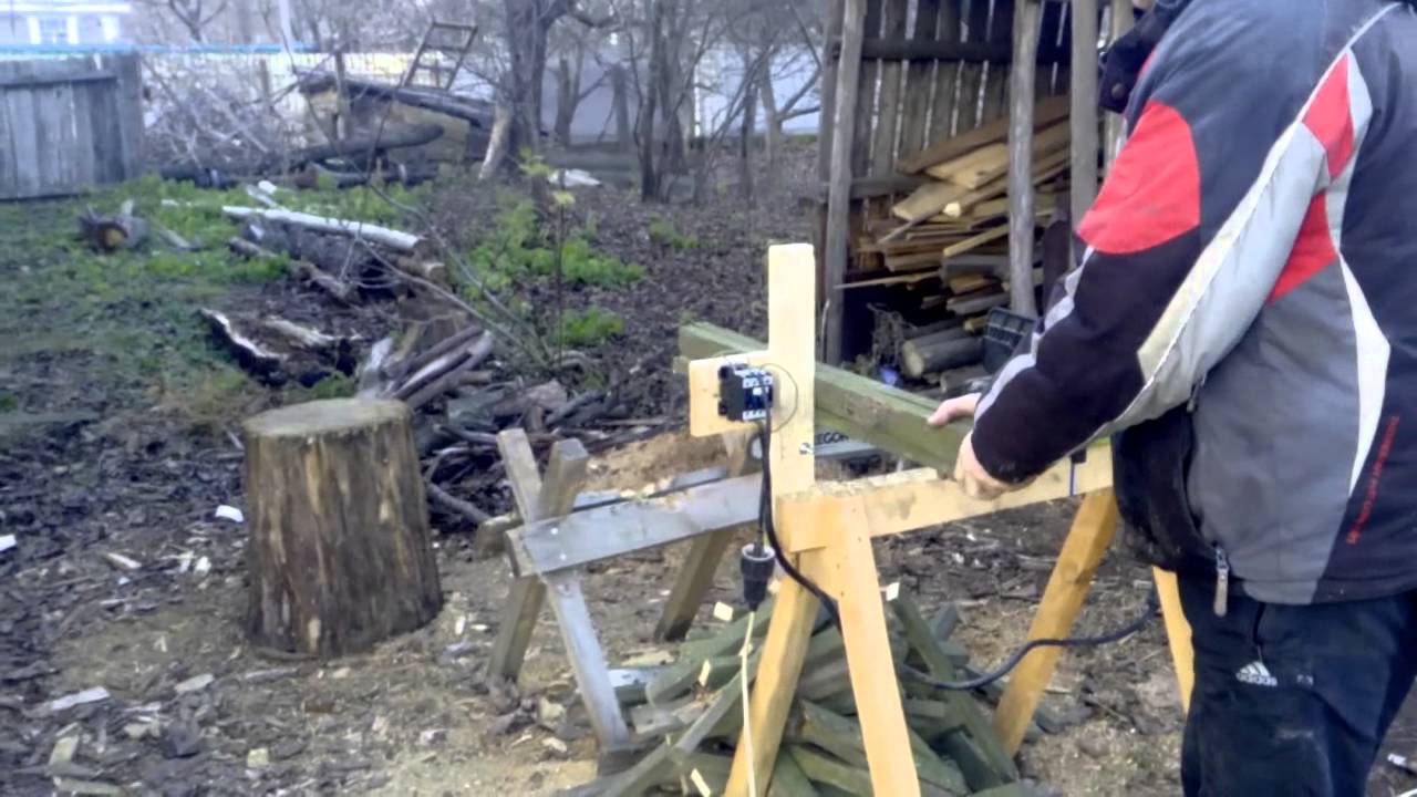 И напоследок мы представим очень удачную для домашнего изготовления деревянную конструкцию, также гарантированно обеспечивающую отсутствие заклинивания пилы за счет малой ширины между упорами козел в месте распила.