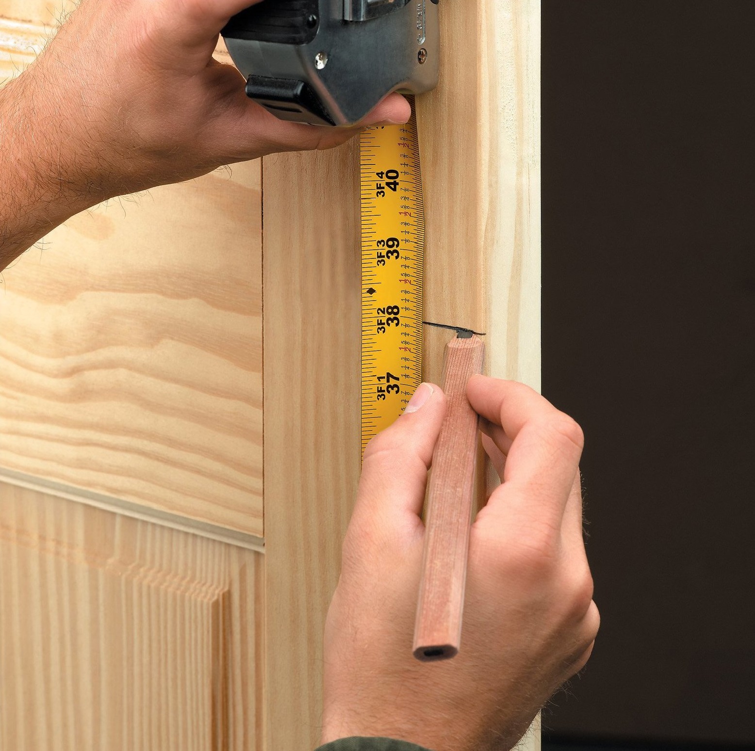 Поэтому важно распределить петли так, чтобы на них приходилась одинаковая нагрузка. Убедитесь в расположении пазов на одном уровне, отмерив одинаковое расстояние снизу и сверху.