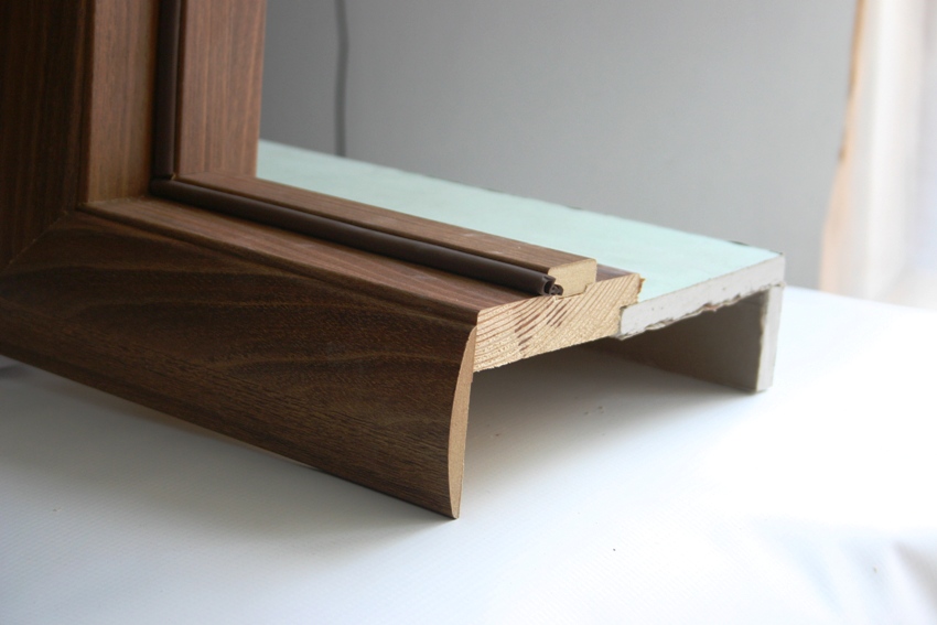 После этого остается только прикрепить наличники. В местах соединения они запиливаются под углом 45°.