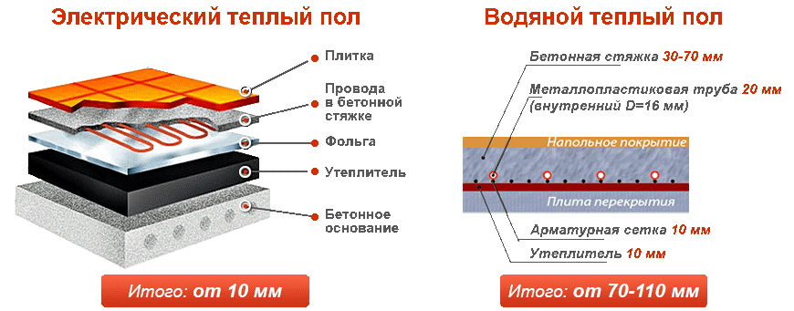 Для кабельного пола устраивается тонкая стяжка, инфракрасный может монтироваться непосредственно под ламинат или плитку.