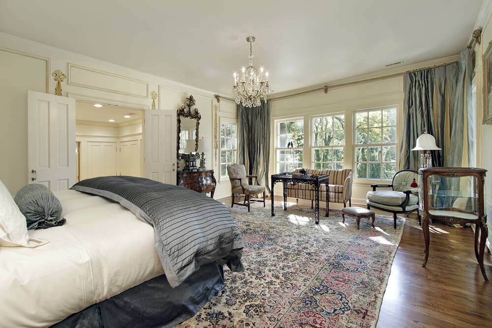 Спальня – это та комната, в которой часто ходят босиком, потому ковёр должен быть мягким, тёплым, приятным на ощупь и хорошо звукоизолировать. В неё можно выбирать ковёр любой формы и размера – это зависит от места, которое планируется заселить. Цвета – спокойные, мягкие, также будет очень уместным длинный ворс.