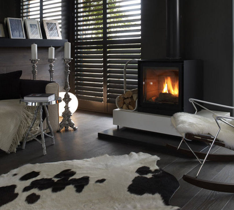 Для некоторых гостиных подойдет коровья шкура, к таким интерьерам можно отнести, как деревенские стили вроде кантри или шале, так и современные интерьеры.