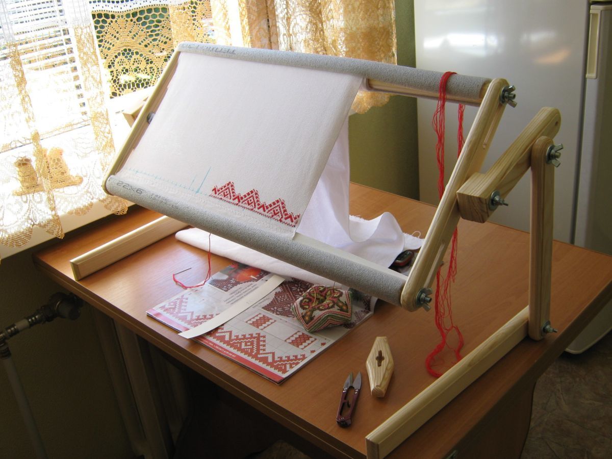 Ко всем пяльцам можно подобрать стойку или подставку, которые ускорят процесс работы, потому что у рукодельницы станут свободны обе руки.
