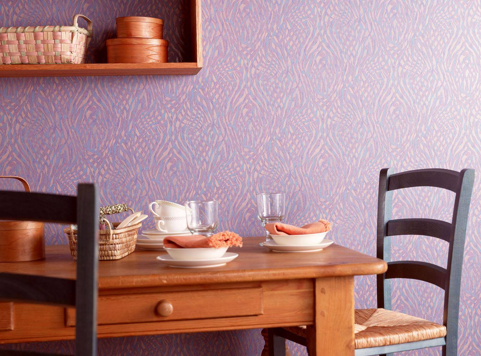 Фиолетовые или сиреневые — дерзко и смело. Интерьер получается динамичным и насыщенным. Лучше выбирать однотонные обои без рисунка.