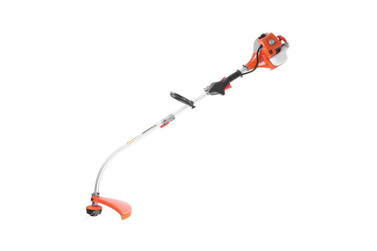 Легкая бензиновая модель шведского бренда производится в США. Старт двигателя осуществляется легким движением руки. Это заслуга системы Smart Start, топливоподкачивающего насоса, автовозврата выключателя зажигания. Прибор оснащен прочным гибким валом. В комплектацию входят ножи для травы, ремни на оба плеча, полуавтоматическая триммерная головка. Эргономичная прорезиненная рукоятка регулируется по высоте. Прибор обладает высокой мощностью – 800 л.с. Триммер весит всего 5 кг, это выделяет его на фоне аналогичных устройств других брендов. Прибор заправляется маслом и бензином (только фирменная продукция) в соотношении 1 к 50.