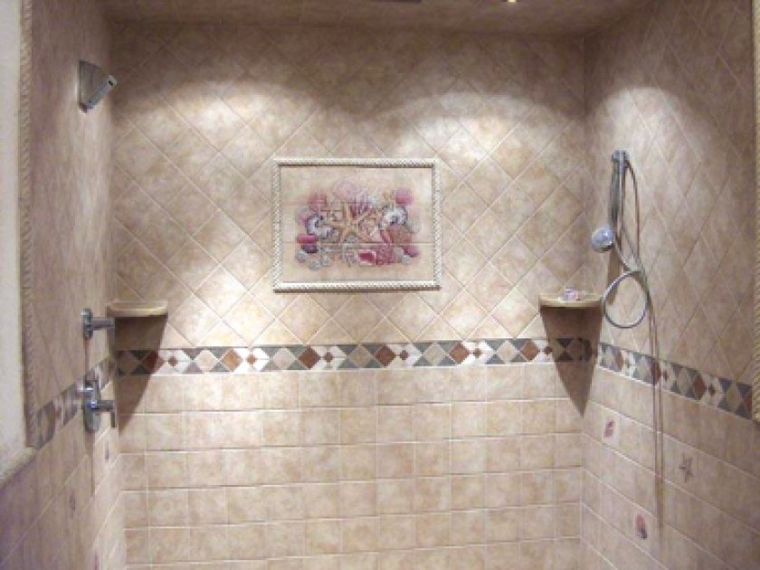 К примеру, зеленые и голубые оттенки создают ощущение прохлады. Бежевый, розовый и терракотовый цвета делают ванную «теплее». Мелкая плитка смотрится очень жизнерадостно, хотя ухаживать за ней труднее. Зато при укладке ее легче резать, следовательно, и рисунок проще создать.