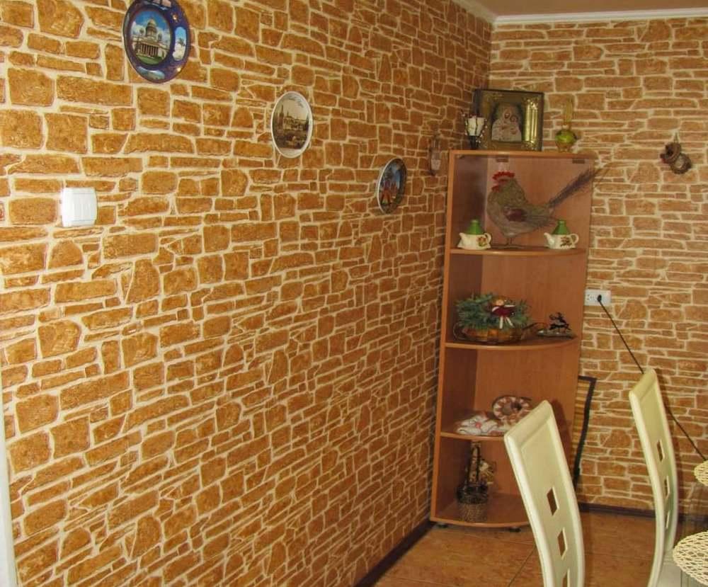 Обои под природный или натуральный камень делают простую квартиру похожей на отдельный коттедж, который построен за городом из природных материалов. Такими обоями оформляют маленькие площади, что делает интерьер более природным.