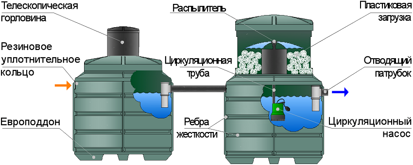 Из биостанций оптимальны комбинированные системы очистки с дополнительными аэробными биофильтрами и зоной анаэробной обработки стоков. Эти ступени позволяют станции быстрее выходить на режим и восстанавливать численность бактерий при возобновлении пользования.