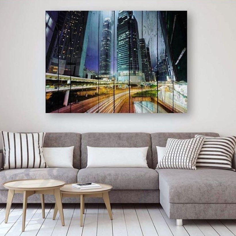То же самое касается урбанистических интерьеров, которые обычно выполняются в монохромном решении. Здесь будут уместны картины с городской тематикой или фотокартины.