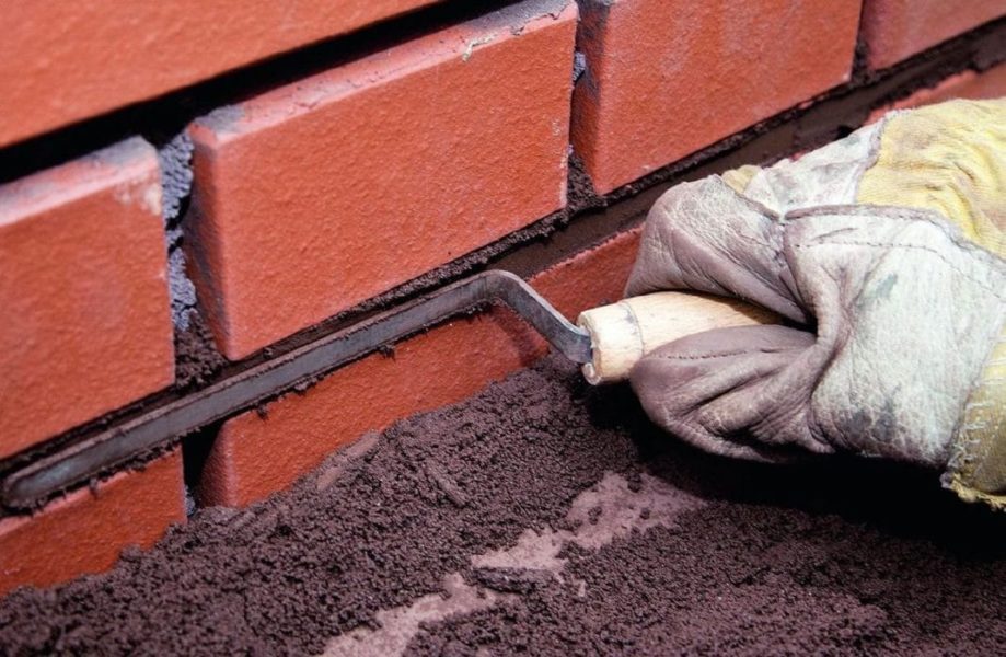 Готовый раствор, как и утеплитель, укладывают при помощи строительного инструмента. В данном случае речь идет о расшивке. Изгиб приспособления определяет форму получаемых швов