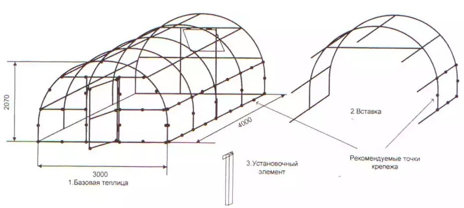 Лучше всего приобрести готовый комплект. Он монтируется согласно приложенной схеме за короткий срок. Никаких особых сложностей это не вызывает. Главное в сборке китайской теплицы – чертежи и сверять этапы постройки с фото монтажных работ.