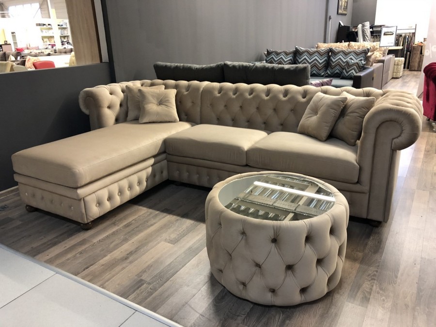Еще одним современным веянием является угловой диван Честерфилд. Он довольно оригинально смотрится и при этом имеет высокую функциональность, так как размещает много гостей.
