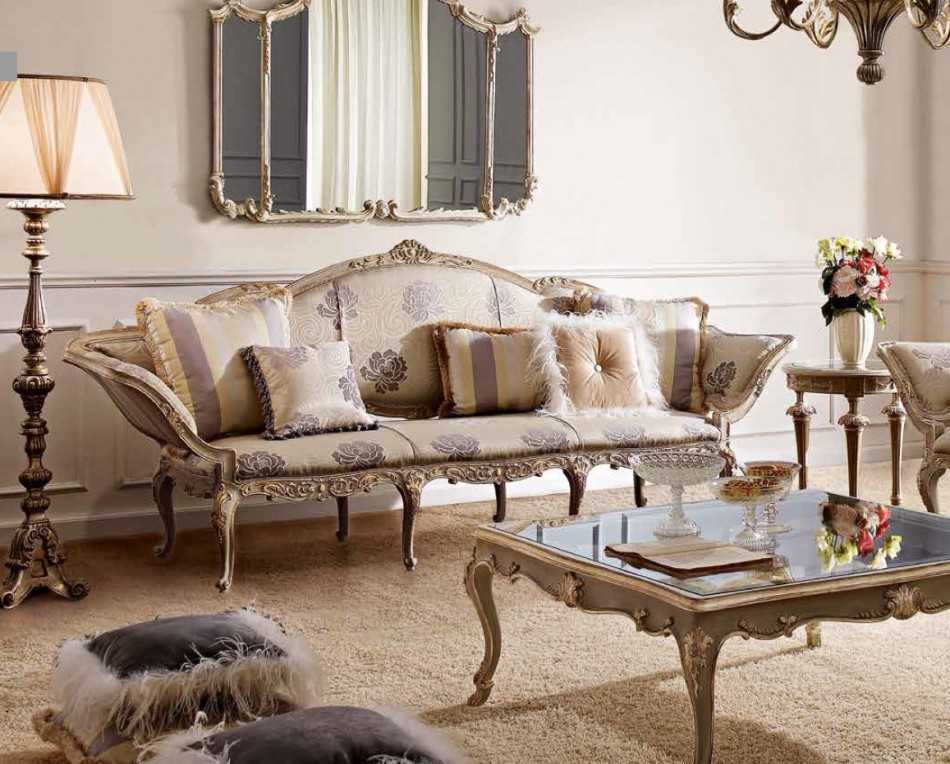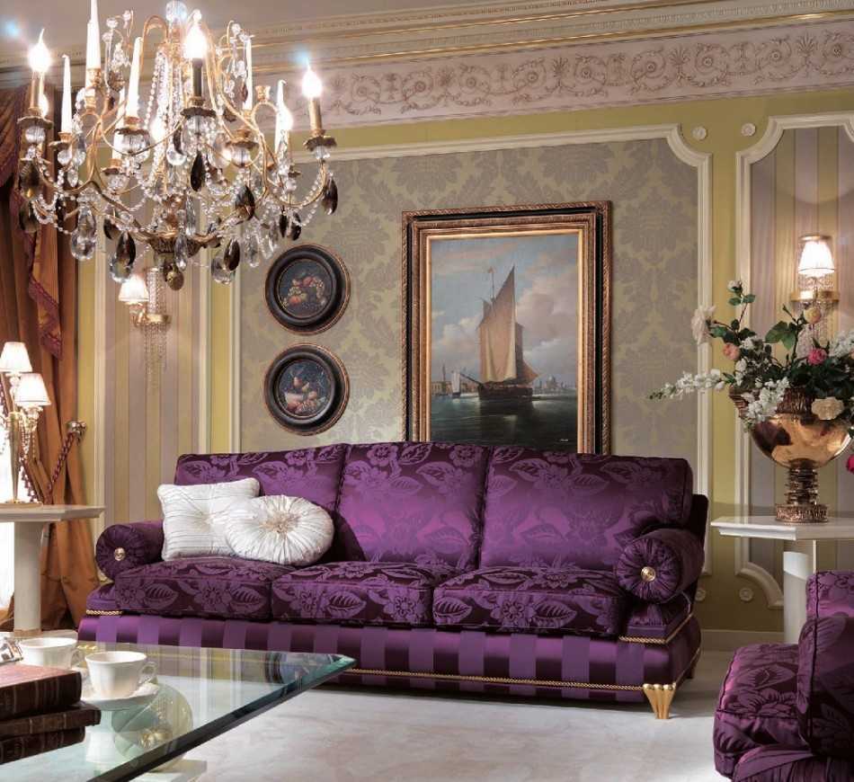 Изысканный интерьер, оформленный в классическом стиле, характеризуется тем, что вся комнатная мебель дополняет друг друга. Поэтому диван должен органично вписываться по стилю и цвету в общую композицию. Он может являться центром композиции, ее главным акцентом, под который подбираются остальной мебельный гарнитур и элементы отделки комнаты.