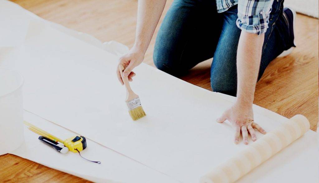 Для такого вида работ приобретаются следующие популярные модели: «Бустилат» и виниловый клей. Есть два варианта нанесения раствора: непосредственно на стену или на обратную сторону полотен. Необходима предварительная подготовка поверхности под отделку: очистка старой краски, грунтование.
