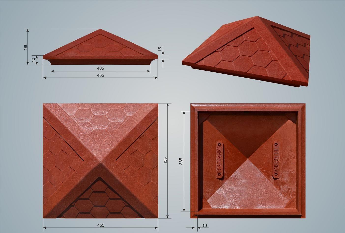 Бетонные колпаки на столбы из бетона или кирпича устанавливаются с целью обеспечения их защиты от негативного воздействия атмосферных осадков и ультрафиолета. В зависимости от размера сечения столбов различаются и габариты колпаков. Форма изделий может быть самой разнообразной. Наиболее простые образцы обладают пирамидальной формой, но встречаются круглые, шарообразные, многогранные и иные варианты.