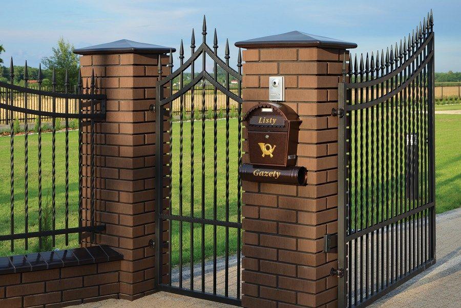 - Некоторые виды данных устройств устанавливаются в процессе возведения столбов и самого забора. Для этого на них есть специальные пазы, которые вмуровывают в кирпичную кладку.