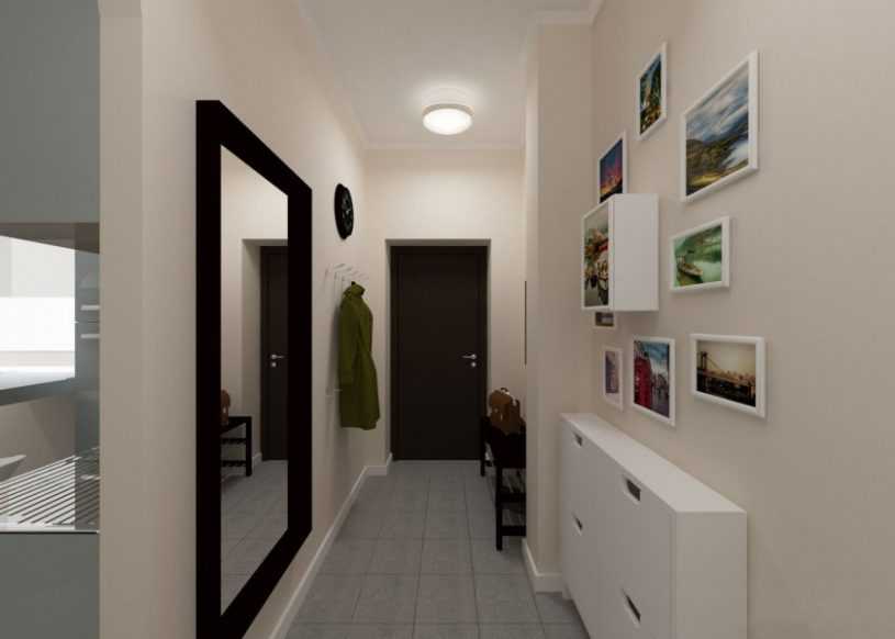 - При дизайне узких прихожих и коридоров необходимо визуально устранить недостатки геометрии помещения и продумать расположение вещей: