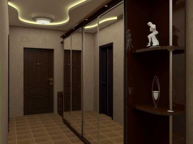 - По возможности напротив входной двери стоит расположить высокое зеркало, которое визуально делает пространство больше. Такой предмет можно разместить и на других стенах, дверцах шкафа-купе;