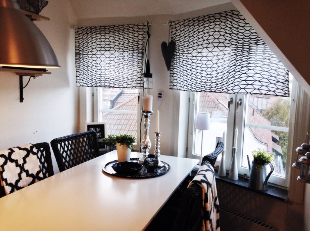 - Текстиль на окнах можно поддержать и скатертью, но не в том смысле, что это полностью одинаковые отрезы ткани. Достаточно будет едва уловимых деталей узора или родства по цвету.