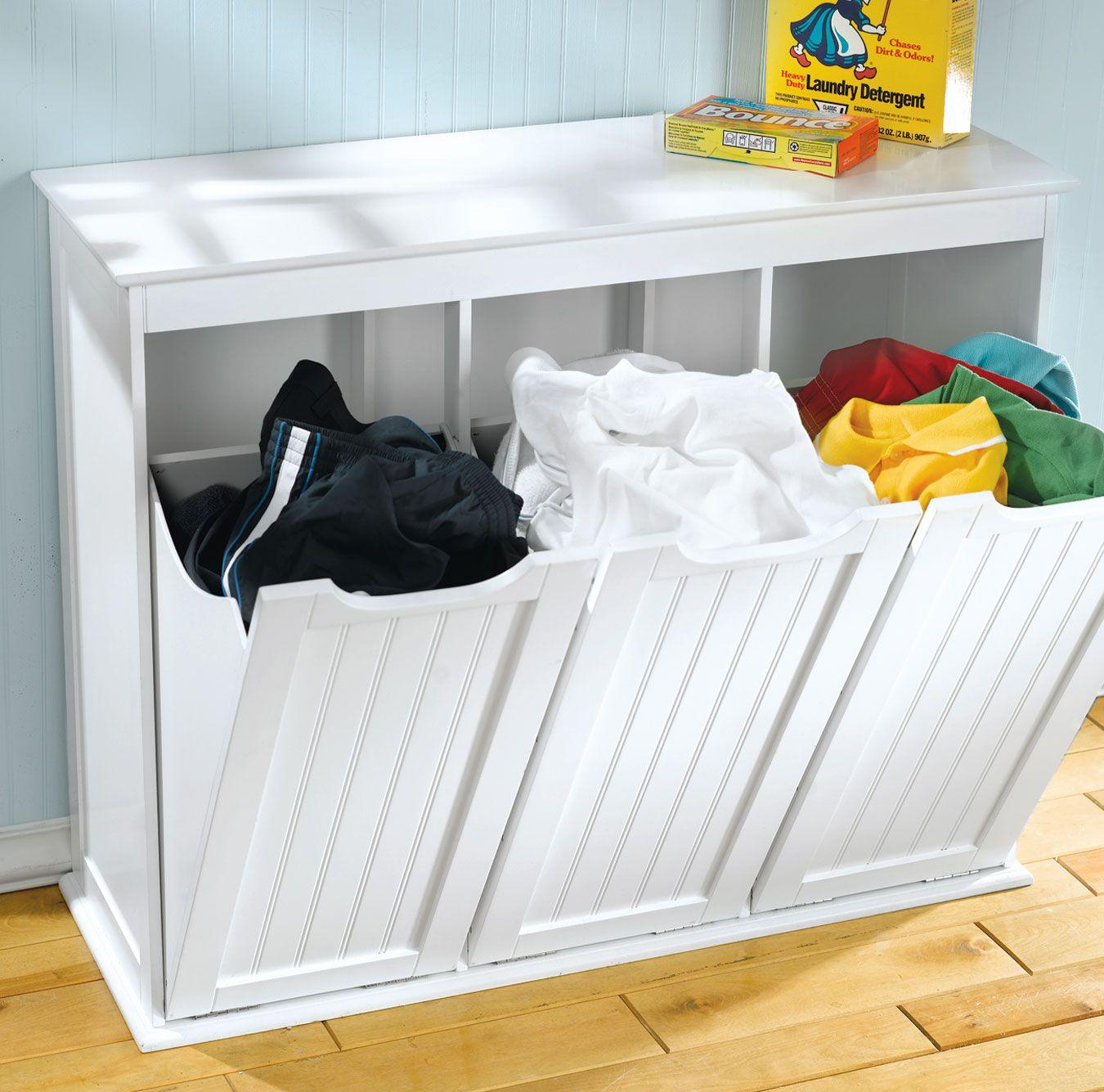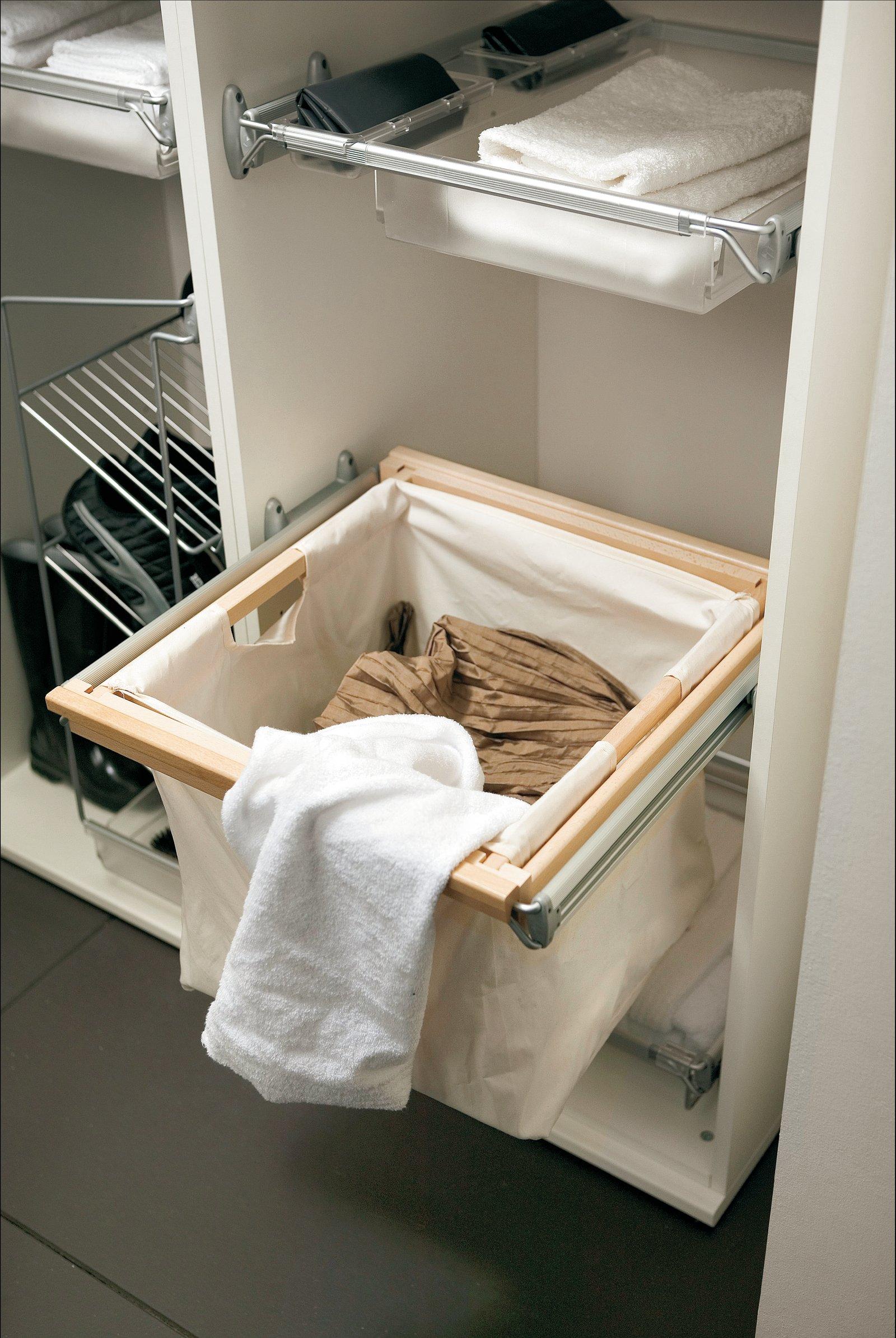 Выезжающий ящик из дерева для белья, аккуратно скрывающий грязную одежду, но достаточно вентилируемый