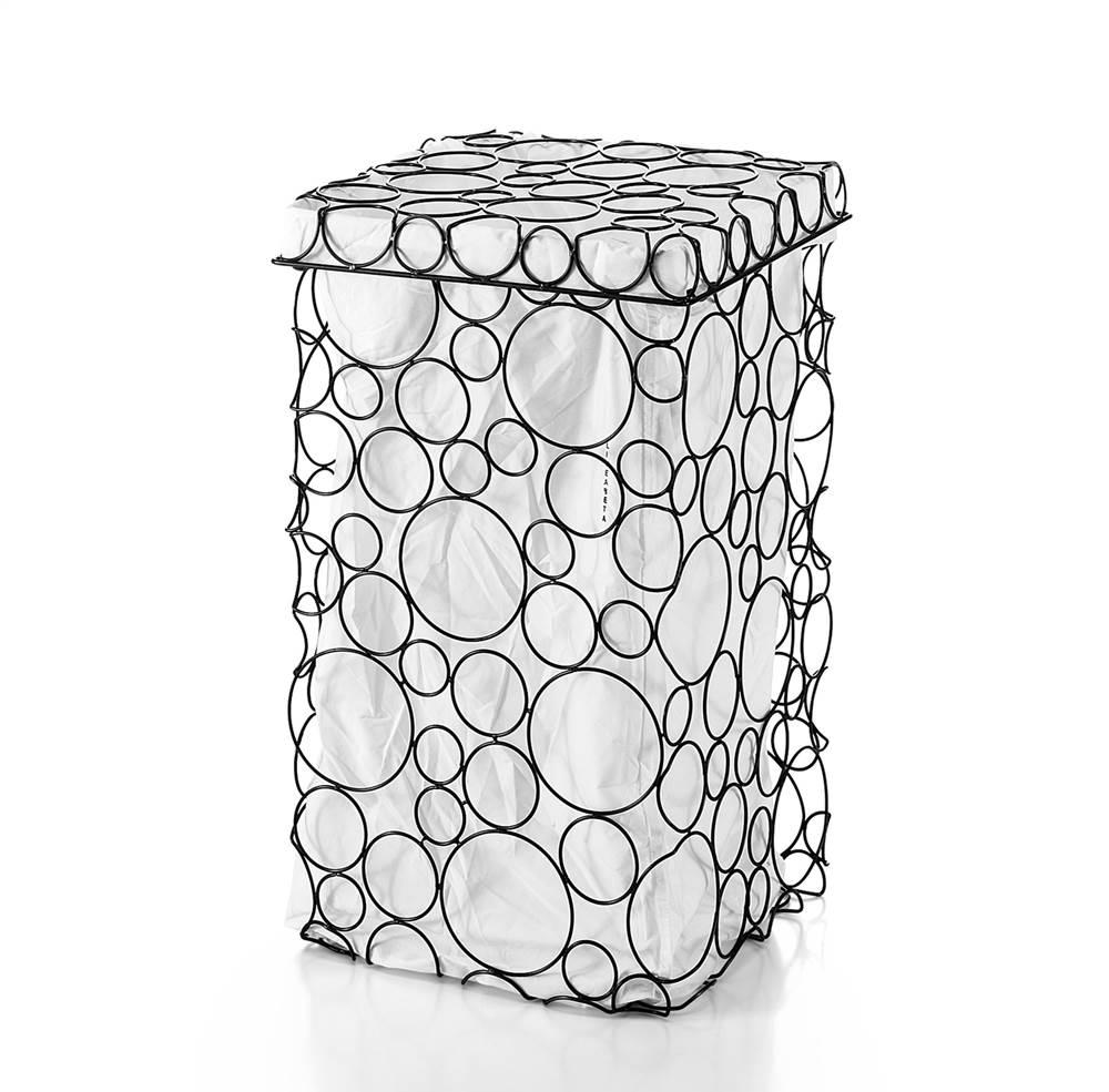 Корзина для белья из ткани для удобства формы может быть на металлическом каркасе