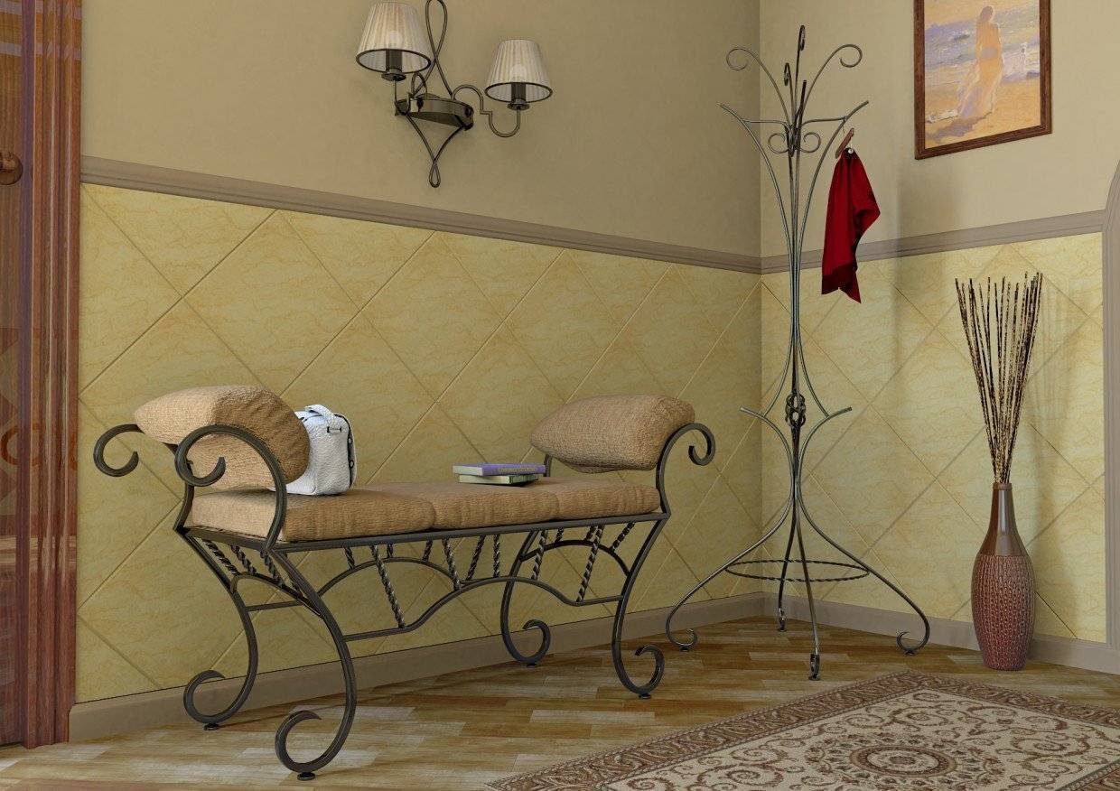 Кованная банкетка в интерьере прихожей