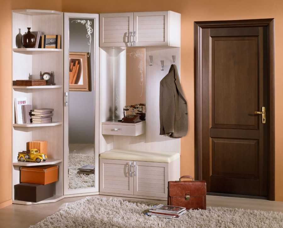 - Угловые. Они прекрасно впишутся в малое пространство небольшого коридора.