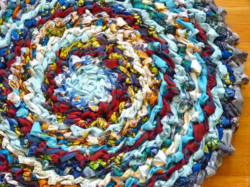 Ковровое изделие из старой одежды можно изготовить путем переплетения тряпичных жгутов, а можно использовать узелковый метод – он более быстрый. Для выполнения работы понадобятся: