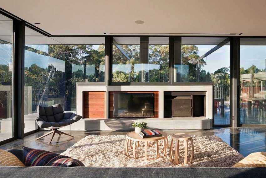 Минимализм характерен строгой геометрией, монохромным оформлением и большими площадями. Все конструктивные элементы в таком строении скрываются за панелями. Окна в доме непременно должны быть огромными.