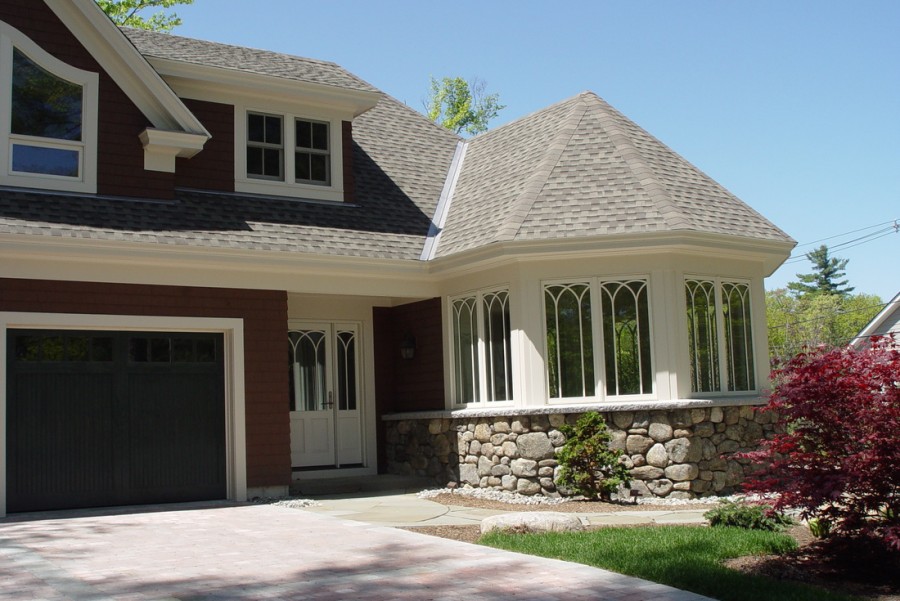 Эркер выполняется в виде выступа с окном на фасаде, позволяющего не только украсить внешний вид, но и увеличить площадь комнаты. Остекление эркера лучше делать по периметру, что придаст дополнительное естественное освещение комнате.