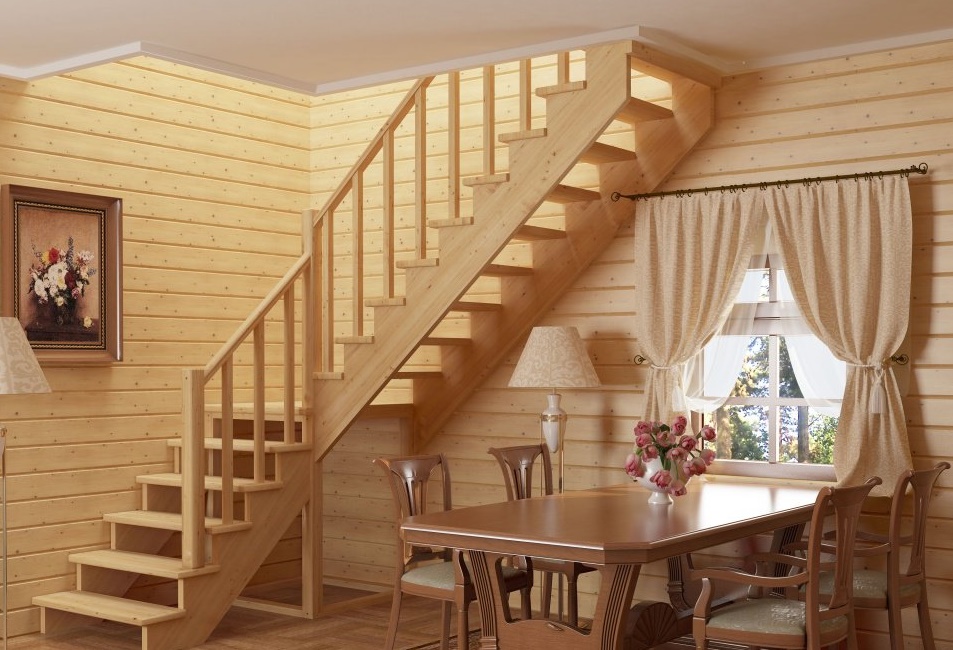 Здесь название говорит само за себя – конструкция представляет собой прямолинейный пролет, состоит из одного марша. Такие межэтажные лестницы содержат не более 16 ступеней, в случае если их больше, логичнее делать поворотные детали с площадкой для соединения дополнительных маршей.
