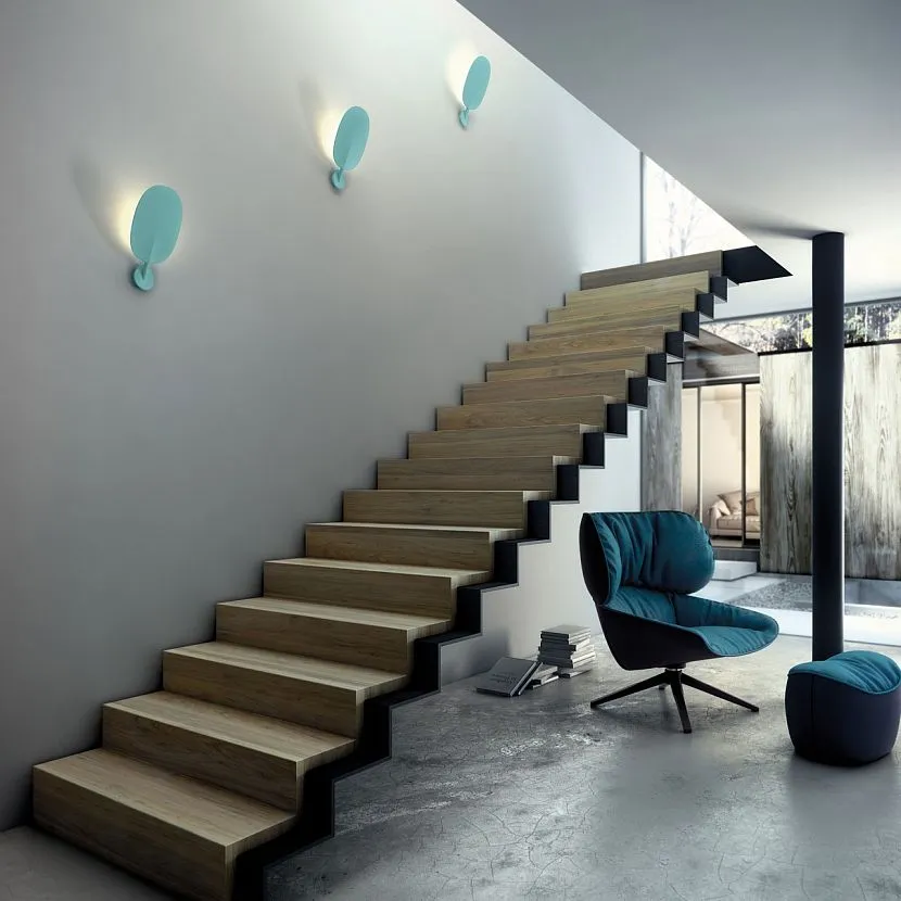 В зависимости от материала лестницы, могут применяться кронштейны или способ врезки ступеней в стену, на глубину до 40 см. Такой вид лестниц отличается стильным дизайном, воздушностью, экономией места и материалов для изготовления.