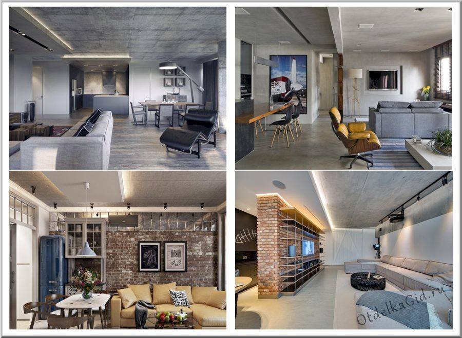 Если не шпаклевать швы между листами гипсокартона и окрасить потолок в цвет бетона, то поверхность будет точно имитировать бетонные плиты перекрытий, что характерно для этого стилистического решения.