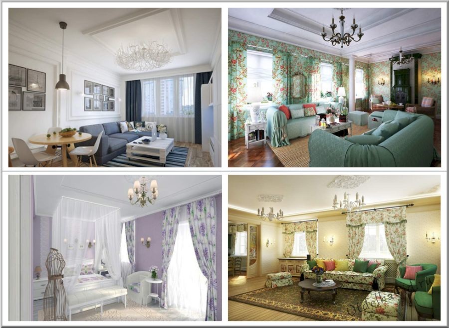 Этот стиль пользуется неизменной популярностью. Стандартный вариант – одноуровневая конструкция с дополнительной декоративной окантовкой по периметру, а также лепниной в центре и по углам. Если площадь комнаты небольшая, то слишком массивные и фигурные элементы не используются.