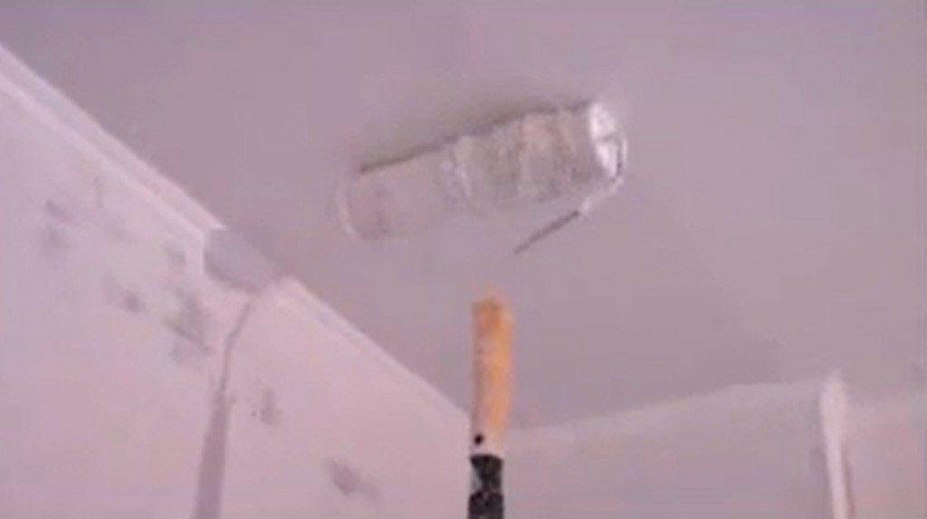 - Прежде всего, потолок следует очистить от пыли, так как она обязательно там соберётся в процессе ремонта и сделать это можно обычной мягкой щёткой на ручке или просто обмести потолок веником.