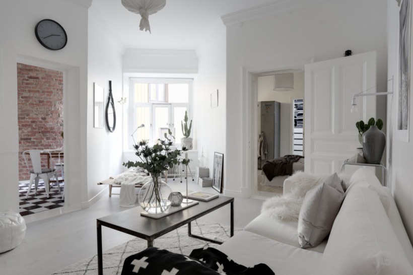 Мода на белые стены в интерьерах практически никогда не проходила. Были только времена, когда на первый план выходили цветные стены. Так что через несколько лет белый цвет возвращается на вершину списка. У нас сейчас такое время. Этому способствует популярность скандинавских стилей, шебби-шик и прованса, в основе которых лежат белые стены, мебель и пол. А определенные цвета в основном используются в аксессуарах и украшениях. Белые интерьеры также ассоциируются с минимализмом, индустриальным и современным стилем. Это удачное решение как для комнат, обставленных в классическом стиле, так и для эклектичных, то есть сочетающих элементы разных стилей. Тогда белый цвет — это своего рода связующее звено всей аранжировки.