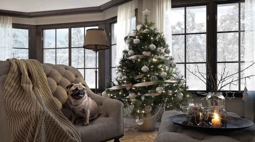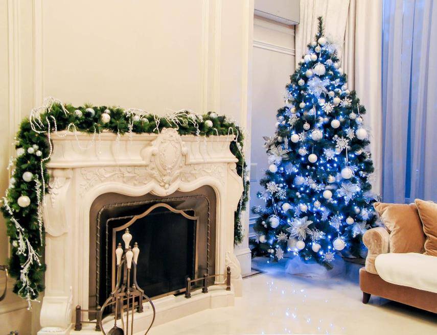 Определившись с оттенками, приступайте к планированию дизайна главной зоны зала или гостиной. Речь идет о том месте, где будет стоять новогодняя елка. Туда ваши гости будут невольно бросать взгляд во время празднования, здесь будет сделано большинство фотографий на праздники, так что дизайн елочки следует продумать до мелочей.