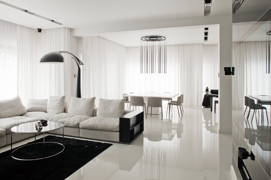 В бело-черном дуэте все нотки должны гармонировать, так как важно создать цельную интерьерную композицию. Есть несколько главных дизайнерских правил, запрещающих применение этих оттенков в равных количествах: