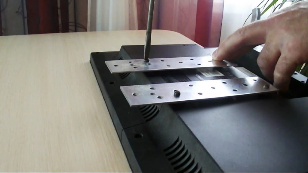 - После изготовления пластин, прикручиваем их к задней части тв.