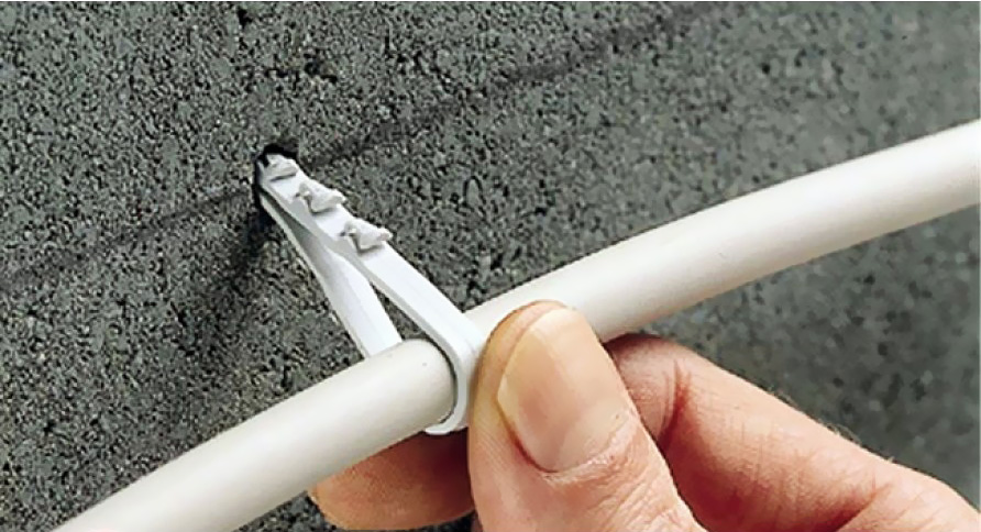 - Крепление электротехнической трубки из пластика с кабелем клипсами.
